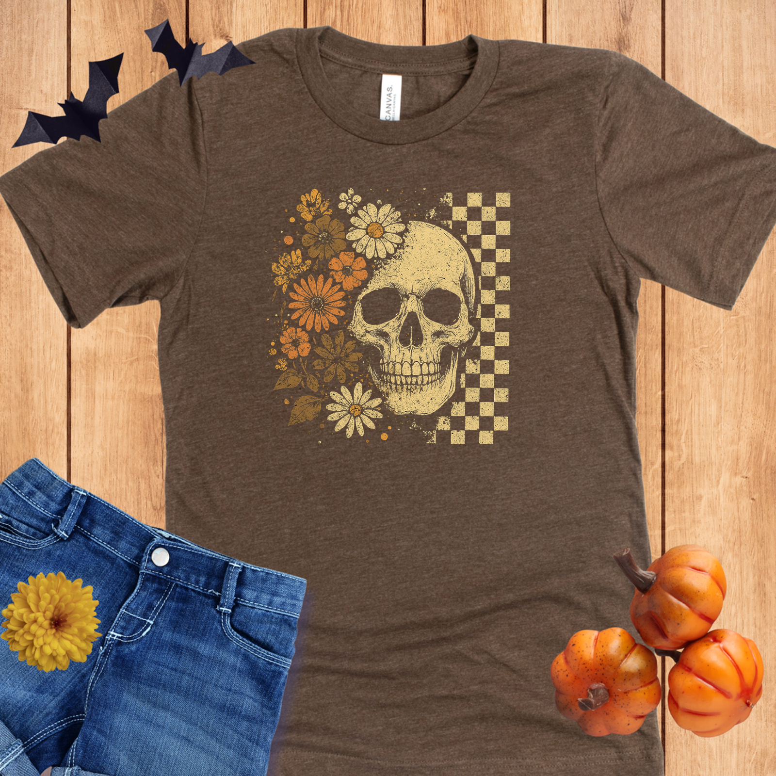 Halloween Skull Checkers Flowers